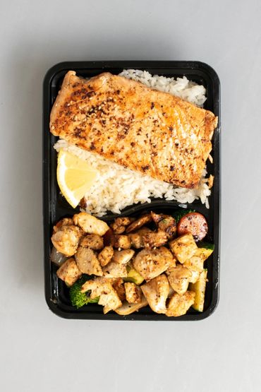 Chicken, NY Steak, Shrimp, Salmon and Filet mignon.