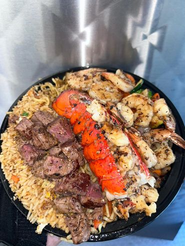 Chicken, NY Steak, Shrimp, Salmon, Filet mignon and Lobster.